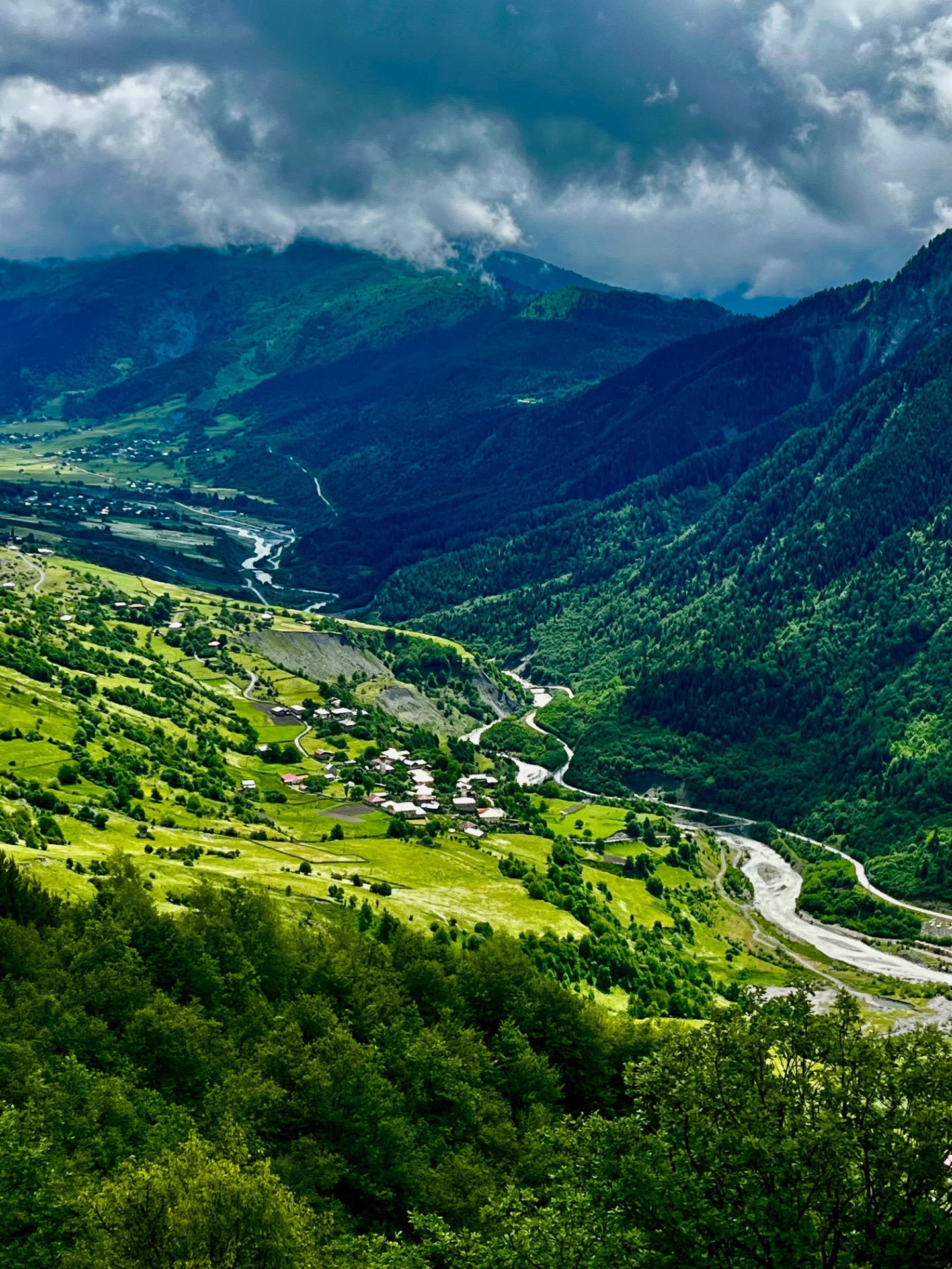 Máme prozkoumanou západní část a okolí Mestia a teď se vydáme prozkoumávat tu východní. Kousek od Mestie leží vesnička Lakhiri a my se zde vydáme ke kostelu Archandělů za krásným výhledem a také za poznáním místních útolen v horách. Do Lakhiri a zpet se přemístíme s naším řidičem.