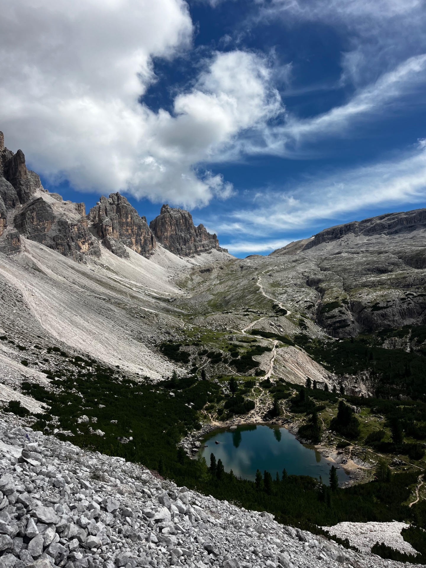 Začínáme náš trek u jednoho z nejkrásnějších jezer v Dolomitech, Lago di Braies (1 496 m). Od jezera se vydáme strmějším stoupáním do údolí k horské chatě Rifugio Sennes (2 126 m), kde si užijeme první večer v kouzelném prostředí. Během výstupu nás čekají panoramatické výhledy na jezero a okolní horské hřebeny.